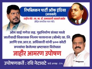 मुंबई – घाटकोपर पूर्व येथील कामराज नगरातील एसआरए पुनर्विकास प्रकल्पात तब्बल ५०० कोटी रुपयांच्या भ्रष्टाचाराचा आरोप करत रमाबाई आंबेडकर नगर येथे डॉ. बाबासाहेब आंबेडकर पुतळ्यासमोर उपोषणाला सुरुवात झाली आहे. संविधान दिनापासून हे उपोषण सुरू असून परिसरातील आंबेडकरी जनता मोठ्या प्रमाणावर या आंदोलनास पाठिंबा देत आहे.