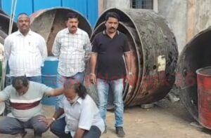 या माहितीच्या आधारे पथकाने संबंधित ठिकाणी छापा टाकून कारखान्यातून लोखंडी बॅरल, अॅल्युमिनियमच्या थाळ्या, चाटू, वाहन तसेच अन्य साहित्य जप्त केले. या प्रकरणी कारखाना मालक असिफ उस्मान शेख आणि कामगार भिमा मोहन वाघेला यांच्यासह तिघांना अटक करण्यात आली आहे.